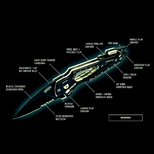 +SmartKnife הוא אולר טקטי קומפקטי וקל משקל שלא יורגש על הציוד שלך ובככיס , המיועד ללוחמים, אנשי שטח וחובבי אקסטרים. הסכין בנוי מחומרים חזקים וקלים, ומציע מגוון תכונות חיוניות למשימות שטח.