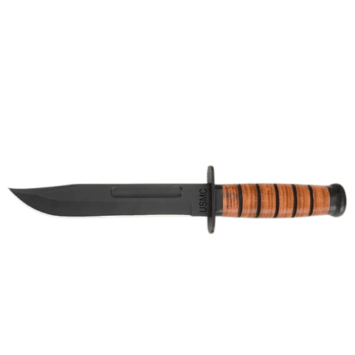 סכין הקרב הקלאסית USMC של United Cutlery כוללת להב קבוע מפלדת אל חלד 420 מוצק עם גימור שחור שעבר טיפול בחום. להב ה-Clip Point בגודל 7 אינץ' חד כתער וכולל חריץ דם כבד. ידית העור האמיתית מוערמת בדיוק כמו הסכינים הקלאסיות שנושאים באופן מסורתי על ידי הנחתים, עם מגן ידיים מגן ופומלה יצוקה. סכין להב קבוע באיכות מעולה זו מגיעה אתה עם נדן עור מובלט נאה